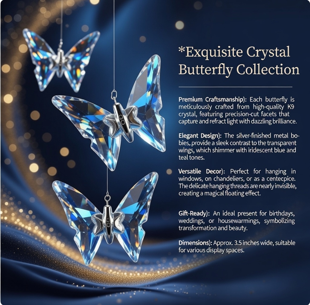 Timeless Appeal 🌟More than just a trend, these crystal butterflies represent a timeless aesthetic. Their classic form and premium materials ensure they will remain a cherished centerpiece, adding a touch of refined luxury to your home for years to come.