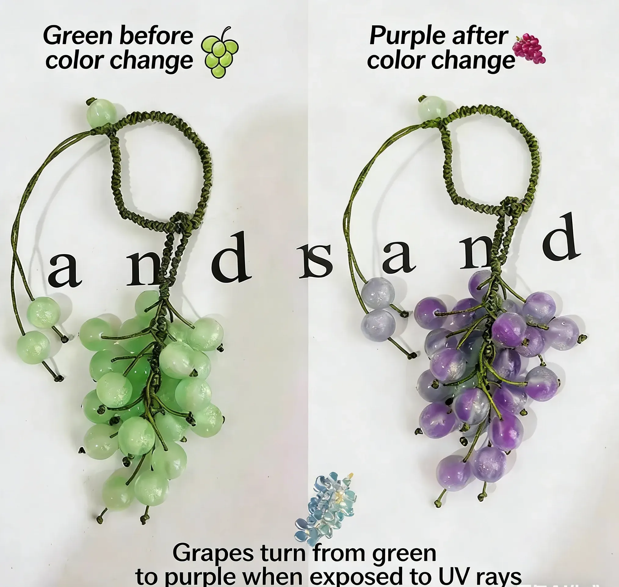 Mystical Transformation 🍇Crafted from premium photochromic material, these beads transition from a lush, verdant green to a regal, deep purple when kissed by UV rays, turning every creation into a living, breathing piece of art.