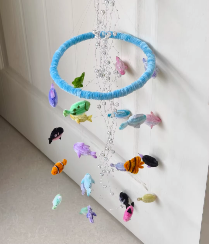 A heartfelt, one-of-a-kind gift for new parents, housewarmings, birthdays, or Mother’s Day 🎉! Handmade with love, this fish mobile is more than decor—it’s a sentimental keepsake that sparks joy, calm, and wonder, making it the perfect present for anyone who adores unique, artisanal home accents 💝.