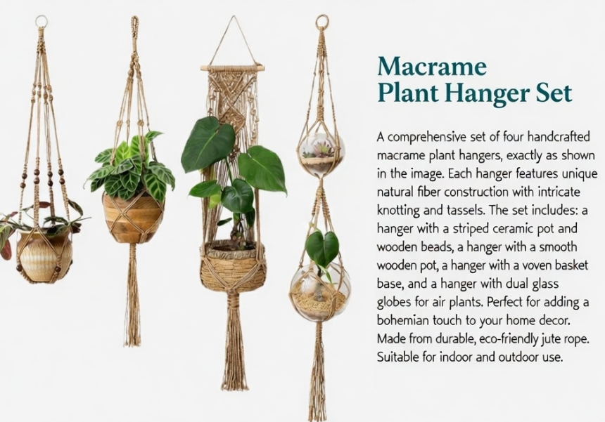 This complete set includes three planters, matching macrame hangers, and sturdy hooks, offering a cohesive solution for creating vertical greenery. Whether showcasing herbs, succulents, or lush trailing vines, it turns ordinary plant care into a refined, decorative ritual that elevates your home’s ambiance.