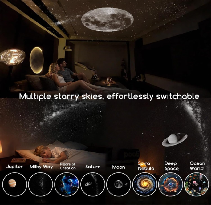 With just a touch, journey through the cosmos. Switch seamlessly between vivid projections of Jupiter, the Milky Way, Saturn, and more, each designed to inspire wonder and calm your mind. It’s like having a personal planetarium at your fingertips. 🪐