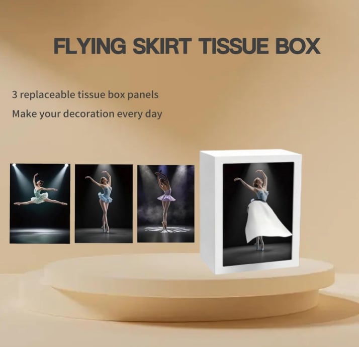 Flying skirt tissue outlet – Each pull makes the skirt reshape like a graceful leap.