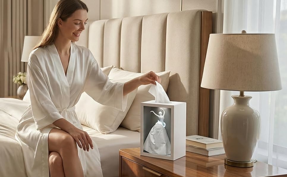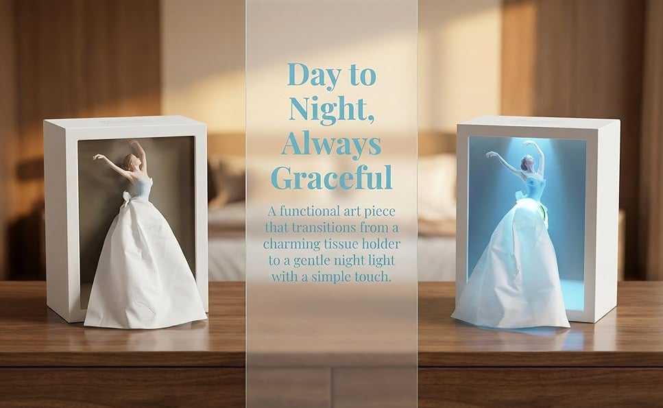Ballet Dancer Tissue Box with Night Light – Touch-Activated, Whimsical Home Decor