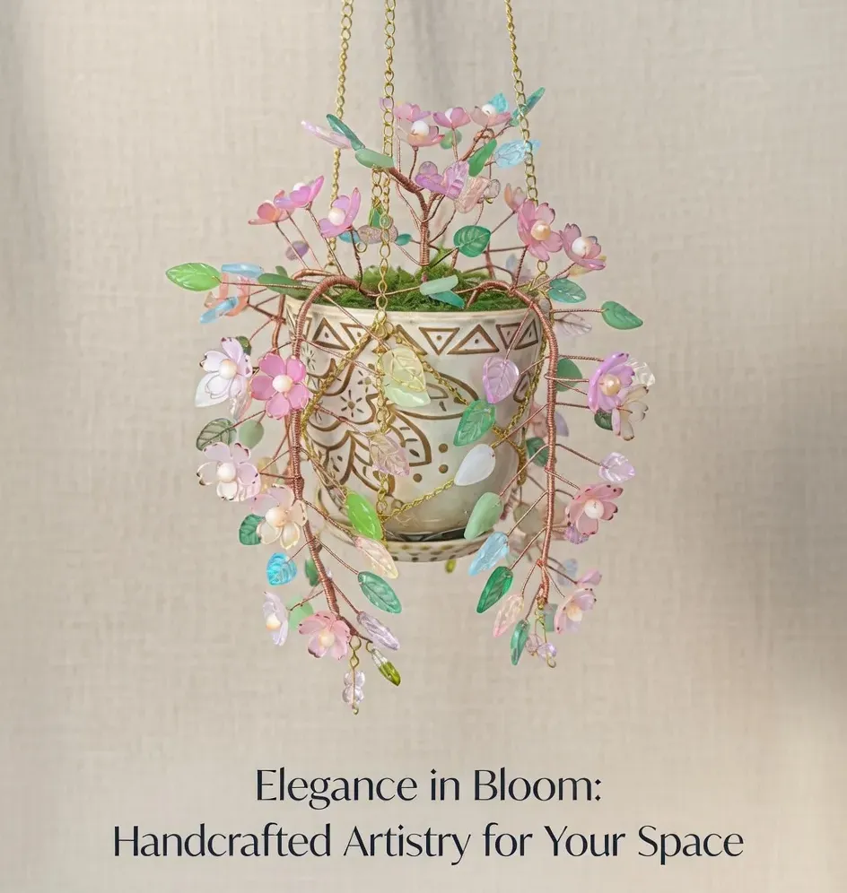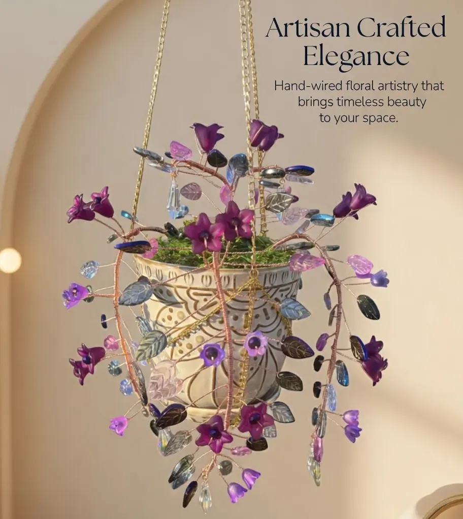 Absolutely obsessed with my new hanging planter! ✨ The hand-wired glass flowers are so delicate and the pastel hues catch the light beautifully—every time the sun hits it, it casts prismatic rainbows across my living room. It’s not just decor, it’s a piece of art. Worth every penny for the artisan craftsmanship! 🪴