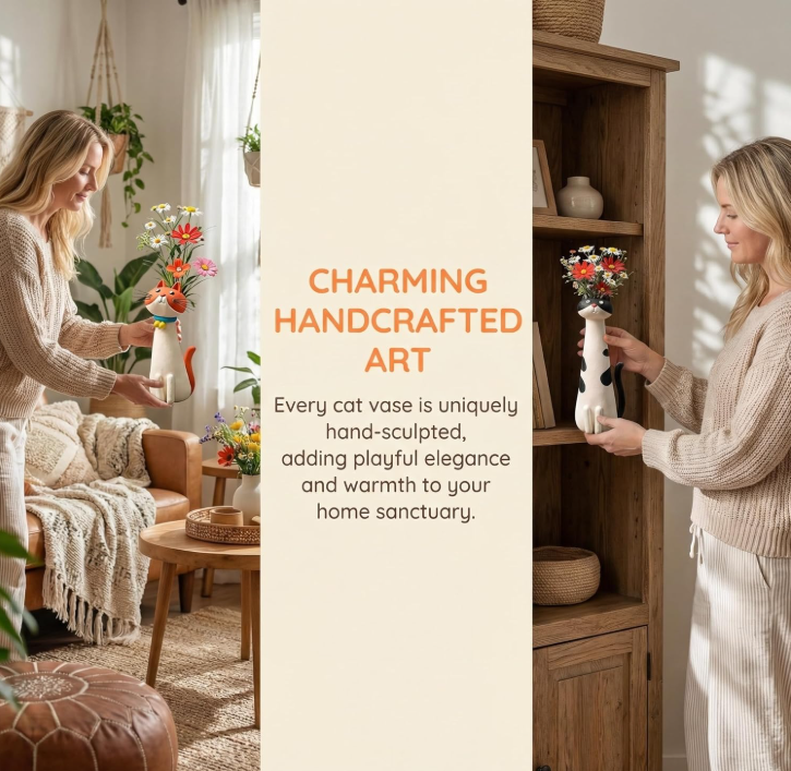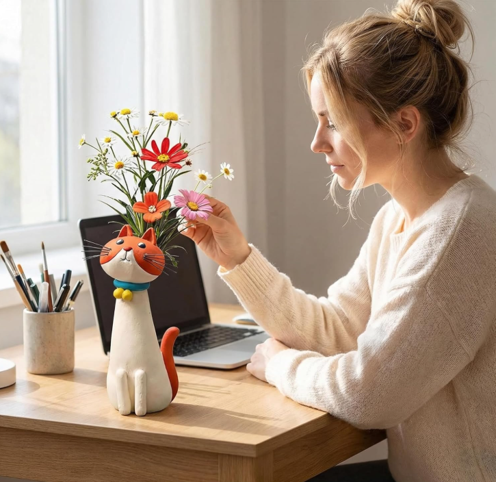 A one-of-a-kind handmade cat vase, sculpted by hand with delicate attention to every detail 🎨