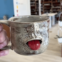 Blending playful design with practicality, the Shaking Tongue Classic Cup is built to last with a sturdy handle and heat-retaining ceramic body. Each sip becomes a lighthearted ritual, bringing a touch of humor and artistry to your everyday moments.