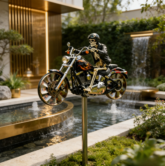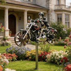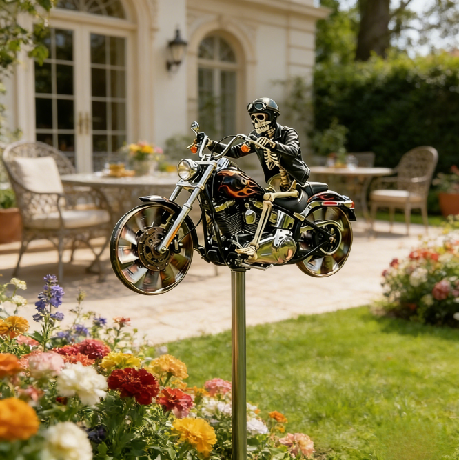 Iconic gothic design meets biker spirit 🦴🏍️. Flame-adorned chopper, leather-clad skeleton rider—this wind spinner is a bold, head-turning statement for your outdoor space 🔥🖤.